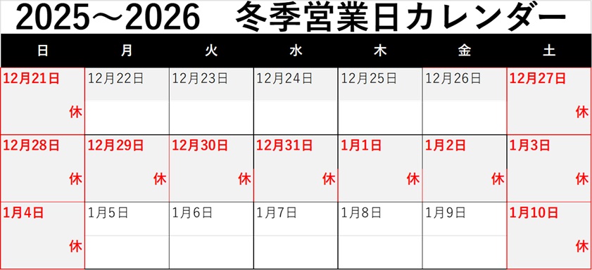 2025年12月26日(金) 午前中のみ当社在庫分を出荷 《最終営業日》